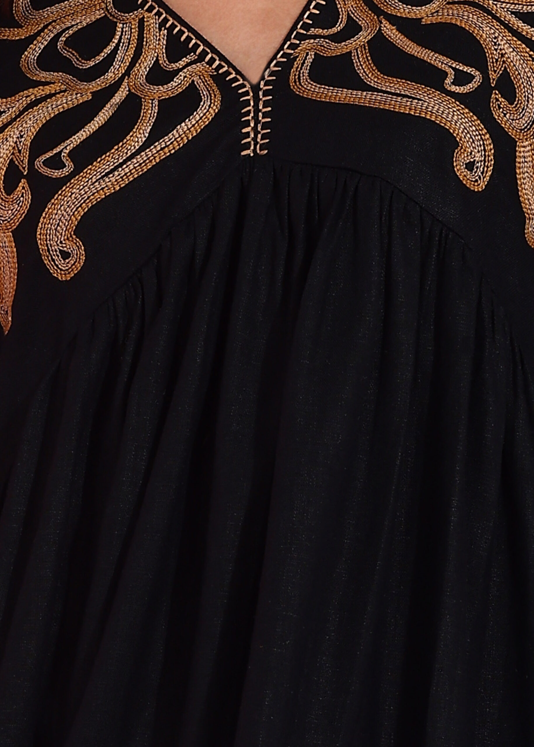 Designed for those who embrace elegance with ease, this embroidered linen midi dress is a blend of sophistication and comfort. Crafted from breathable linen, it drapes beautifully, offering a relaxed yet polished look. The intricate embroidery along the neckline adds an artisanal touch, making it a standout piece for any occasion.
